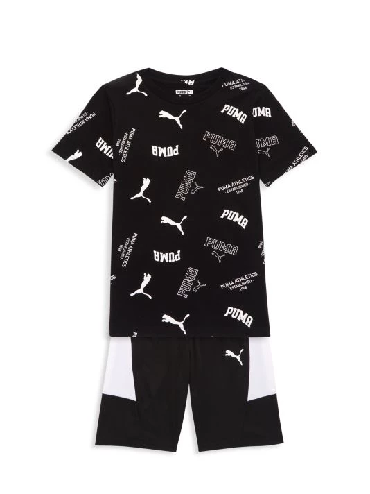 Crafted of 100% cotton, this crewneck T-shirt is emblazoned with multiple contrasting Puma logos.