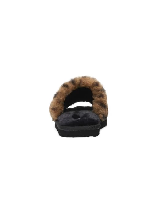 These Puma slipper slides flaunt a faux-fur upper and footbed. The cheetah-print vamp is complemented by contrast logo tape.
