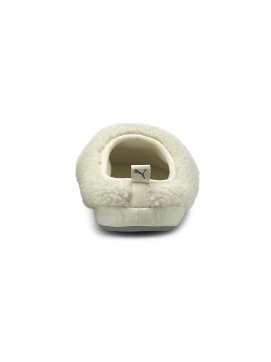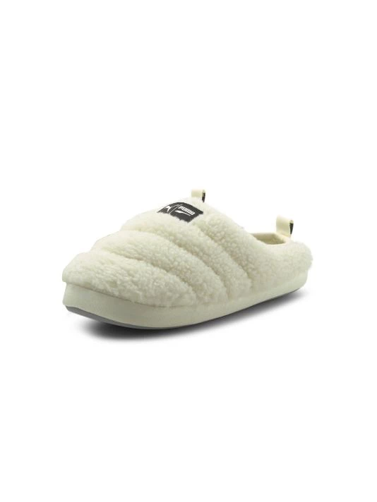 The Puma Scuff Mule features a quilted sherpa upper padded with a soft fleece-like lining and Puma webbing across the side.