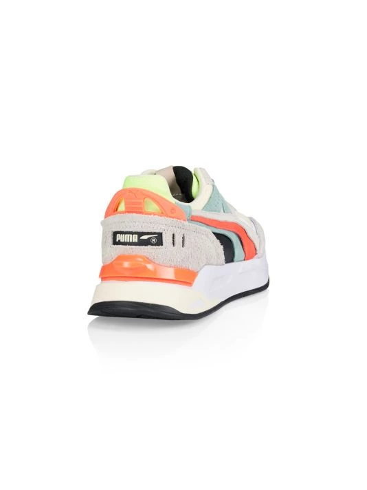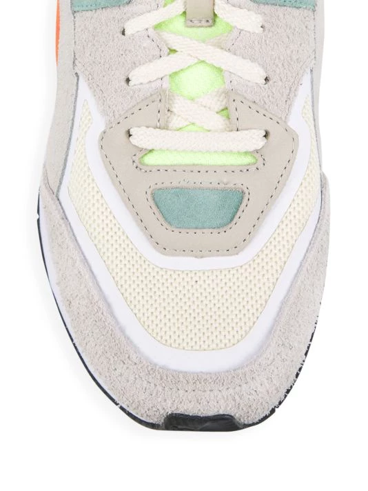 Designed with bright detailing, these running-style sneakers are crafted from soft suede atop a sculpted rubber sole.