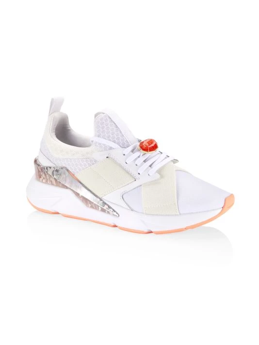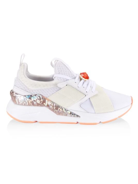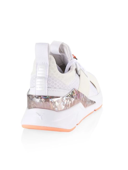 Muse X5 platform sneakers with a luxe crystal embellishment at lace-up vamp and contrast shimmer at back.