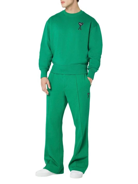 Puma and AMI paired up to create an easy-going, lax collection of oversized, boxy silhouettes. Combining the Bavarian sportswear brand’s casual style with the Parisian label’s tailoring, this collaboration harnesses their respective amicable reputations and builds upon their followings. The line includes striped polos, crewneck sweaters, and pleated sweatpants, complete with a newly created co-branded logo. Crafted of soft cotton, this Puma x AMI sweatshirt features a co-branded logo on the chest and is complete with a ribbed hem.