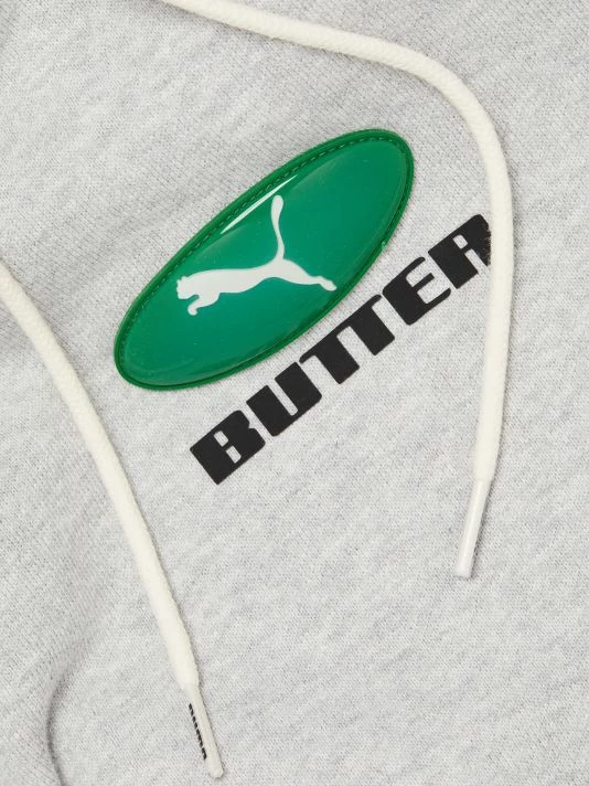 From the Puma x Butter Goods Collection. This fleece sweatshirt showcases an embroidered Butter logo on the front and a drawstring hood.