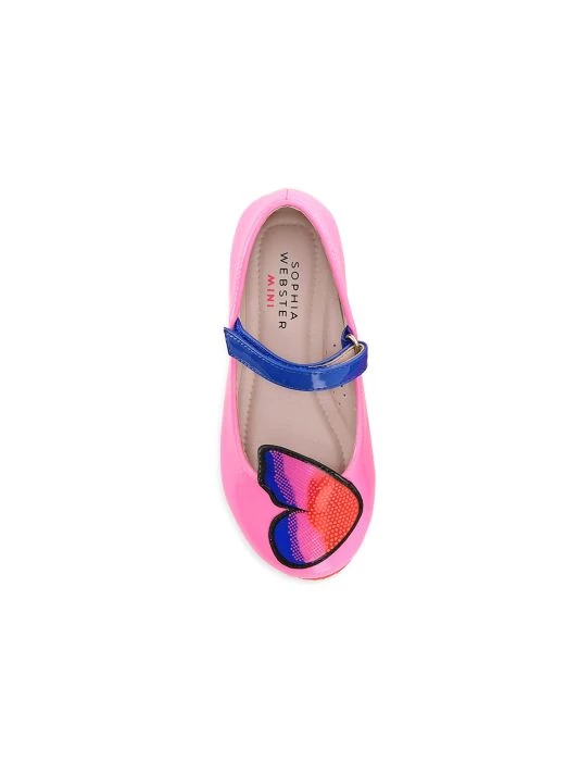 Completed with a contrast instep strap, these patent leather flats by Sophia Webster feature a vibrant bitterly wing appliqué at the vamp.