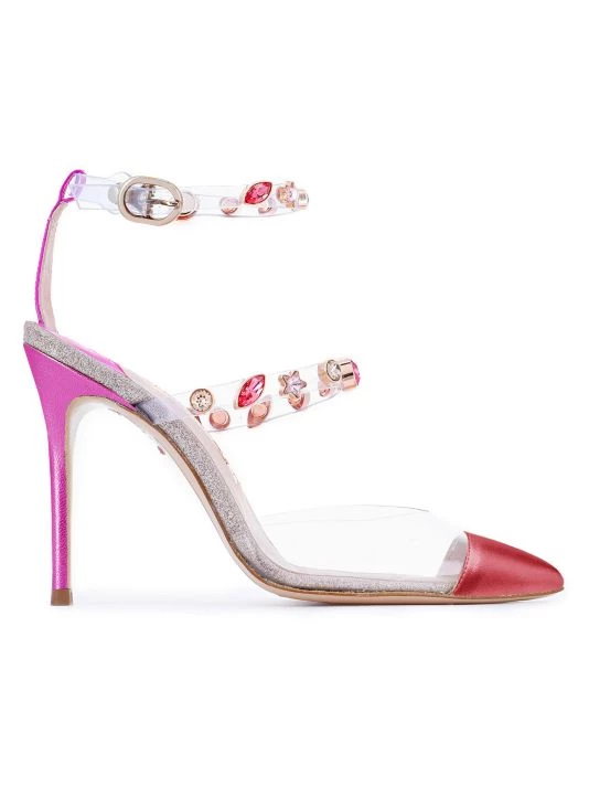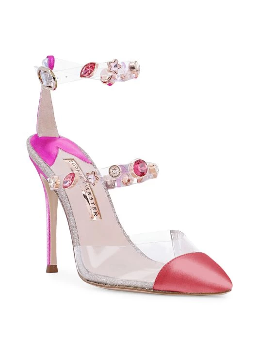 Sophia Webster’s Camille pumps are adorned with embellished translucent straps and a contrasting heel.