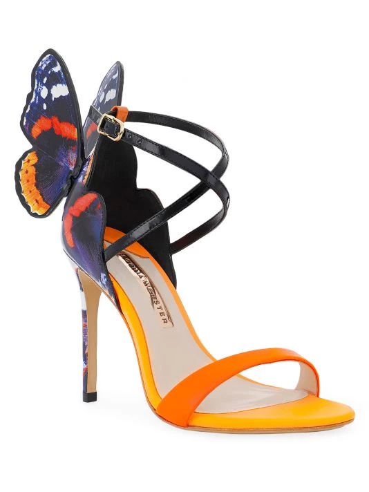 ONLY AT SAKS. Sophia Webster’s Chiara sandals are styled with a signature butterfly appliqué evoking the label’s playful yet bold aesthetic. Fastened by interlocking ankle straps, the British-based brand finishes this statement pair with a leg-lengthening stiletto heel.