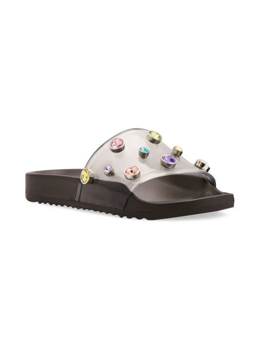 Sophia Webster’s Dina slides have a transparent vinyl strap adorned with multicolored embellishments. This glamorous pair is finished with a molded footbed for all-day comfort.