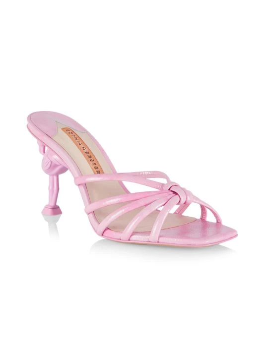 Sophia Webster’s Flo Flamingo sandals are elevated with a flamingo-shaped heel. The British-based label designs this statement pair with a knotted strappy vamp.