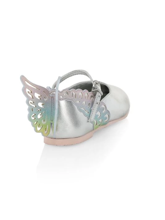These metallic mary jane-style flats resemble butterflies with the brand’s signature intricate wings accents in an ombré-effect glitter finish.