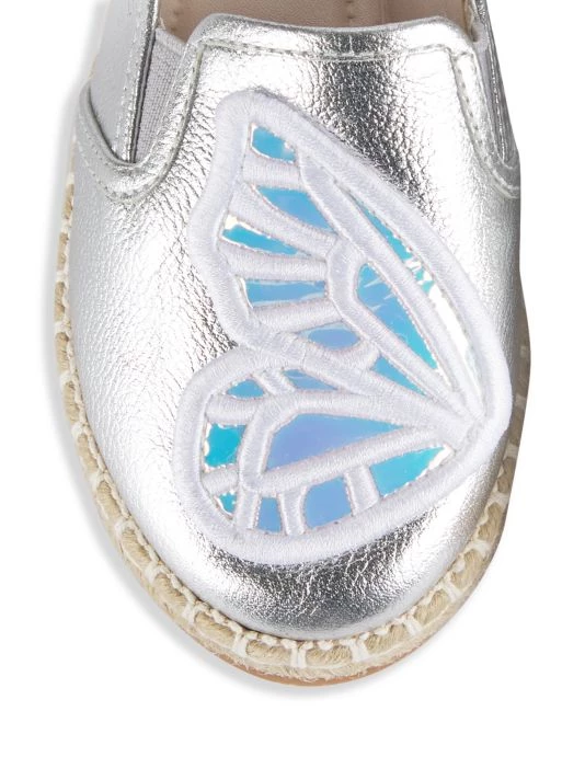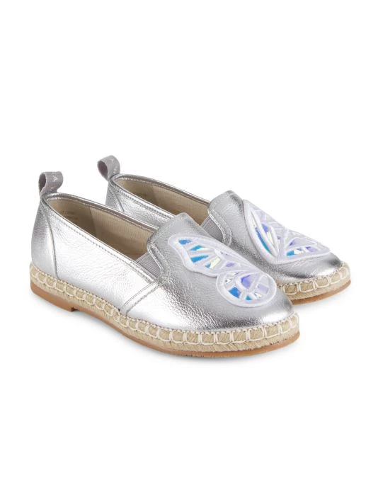 Metallic leather slip-on espadrilles with a butterfly front detail.