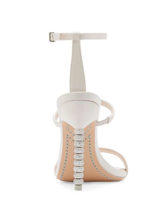 Sophia Webster’s Rosalind sandals are crafted of smooth satin with a strappy design. These heels boast a crystal-embellished beaded heel.
