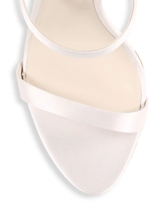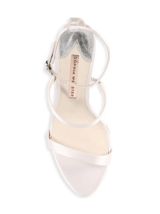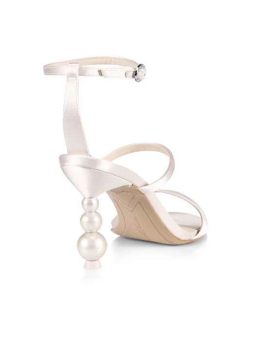 Elegant pearl-shaped heel and satin construction elevate these stunning ankle-strap sandals to sculptural artistry.